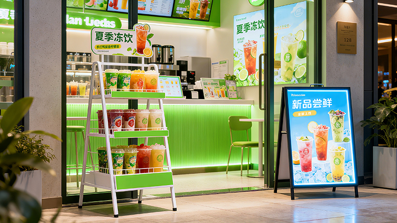 Optimized summer displays for a cold beverage chain (80+ stores):​​ A-frame floor stands enhanced entrance visibility, increasing foot traffic by 40%. Luminous table signs improved order accuracy, while acrylic tiered display racks streamlined preparation. Post-optimization, the average daily output per store rose by 120 cups, customer wait times were reduced by 25%, and peak season revenue grew by 35%.