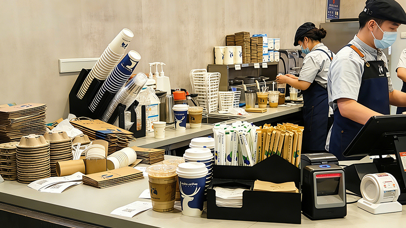 Configure acrylic stepped display racks in the backstage preparation area, place different cup sizes on layers by size; divide into independent areas with dividers. Straws and sleeves are stored for easy access, improving access efficiency by 50% and reducing backstage sorting time by 30%.