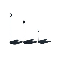 This metal label holder securely holds price tags and menu cards with a stable base.